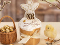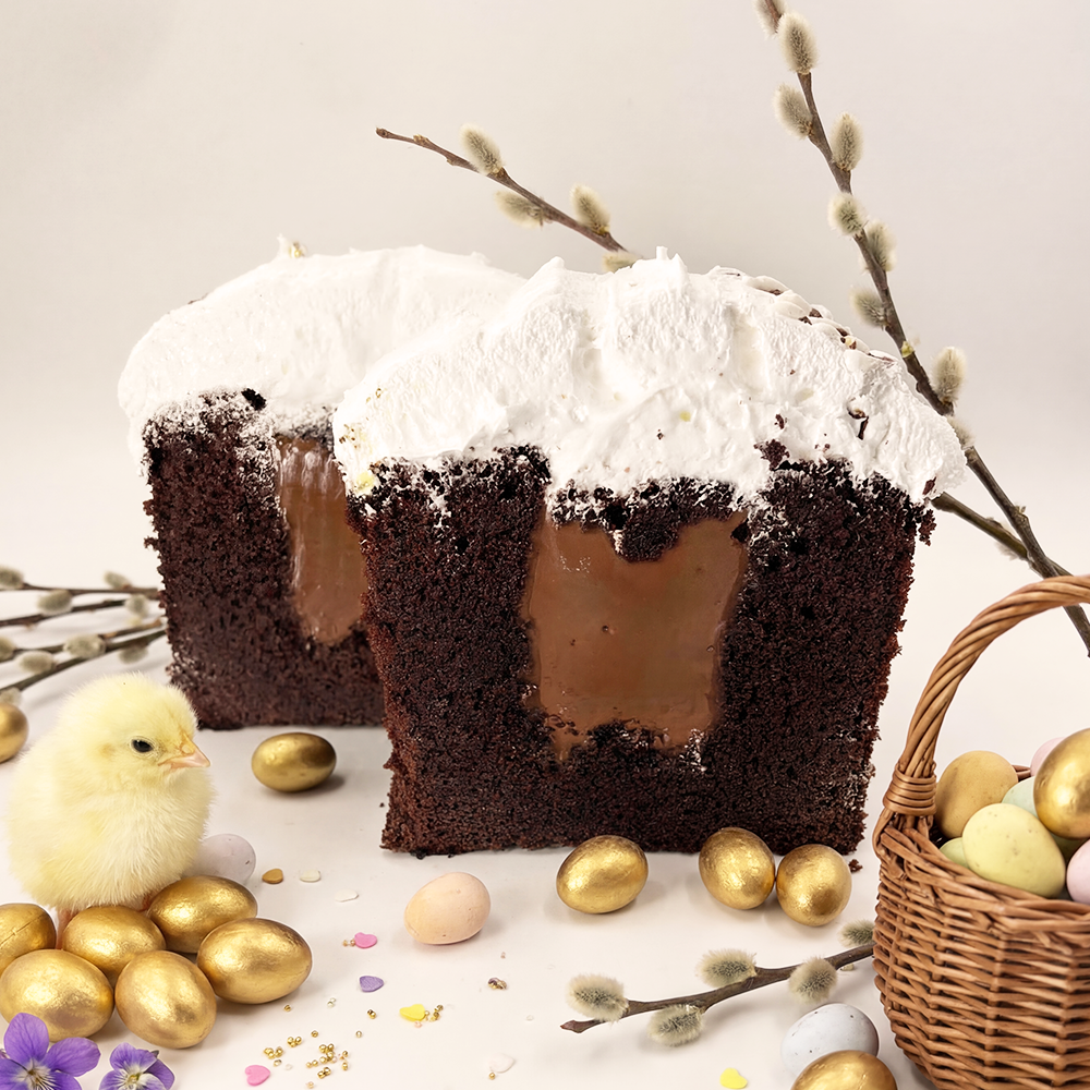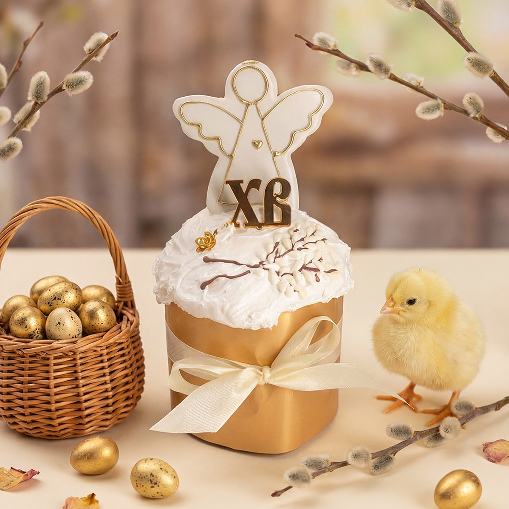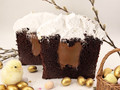 Кулич шоколадный с начинкой из шоколадно-ореховой пасты. Украшен белковым кремом, медово-имбирным пряником, орехами в шоколаде и мастикой. Срок хранения: 72 часа в охлажденном виде (4+2) °C Вес: 750 г